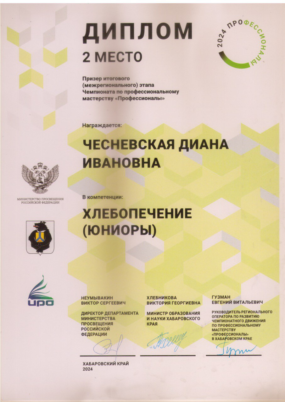 2024_Чесневская Диана Профессионалы _Хлебопечение диплом_2_место