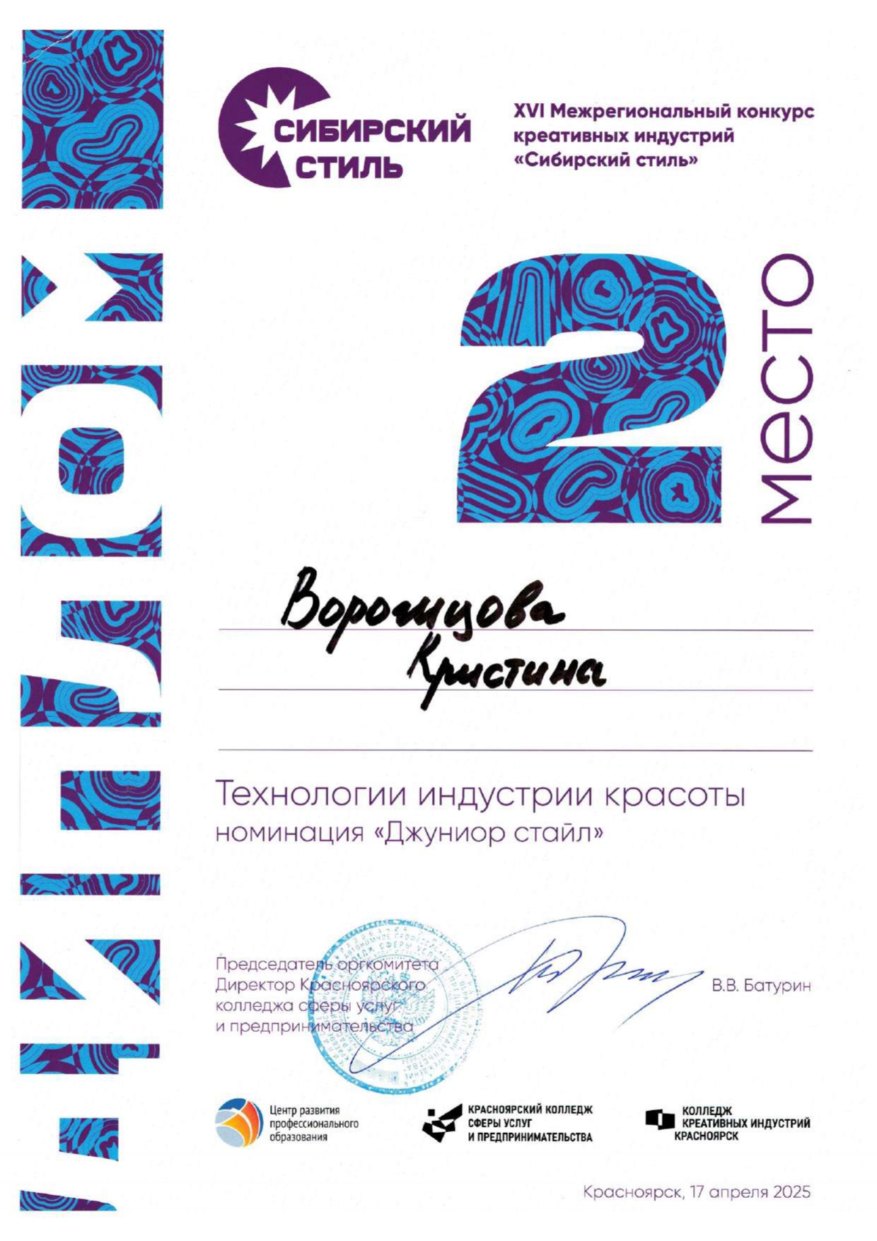 2025.04_Воронцова Кристина Сибирский стиль 2 место