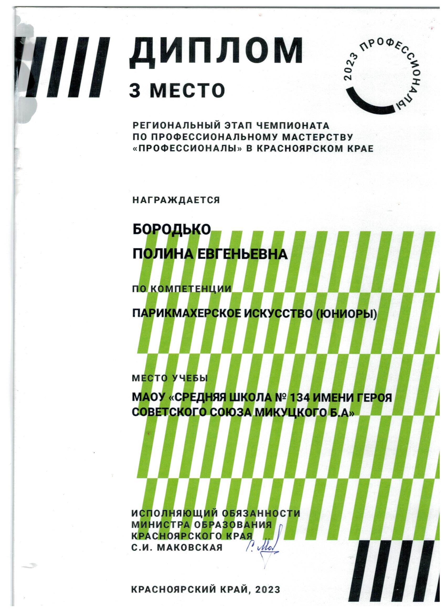 Бородько Полина Диплом Парикмахерское искусство