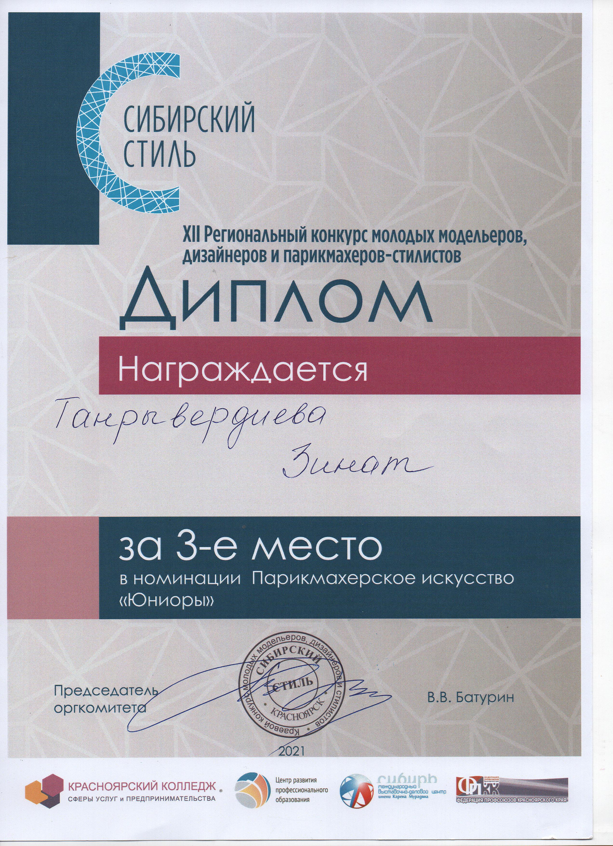Диплом Танрывердиева Зинат