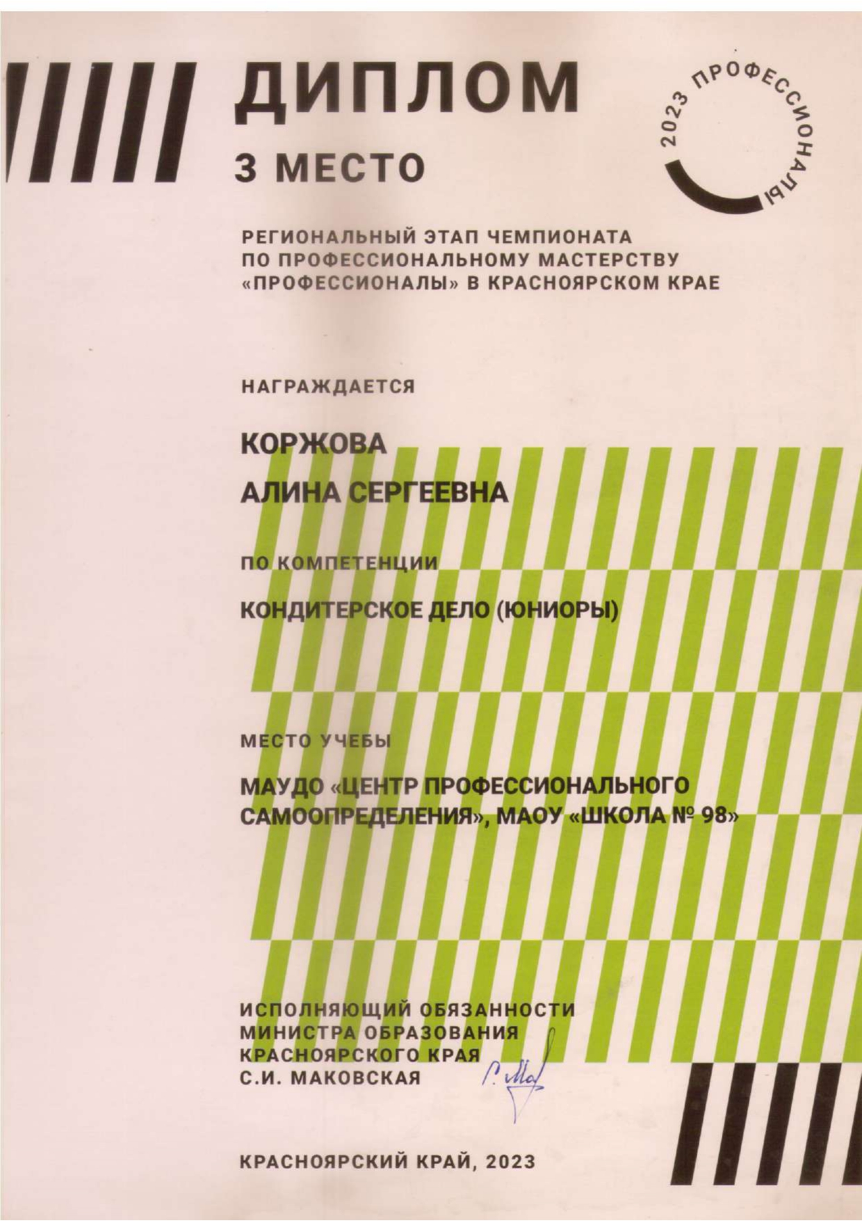 Коржова Алина Диплом Кондитерское дело