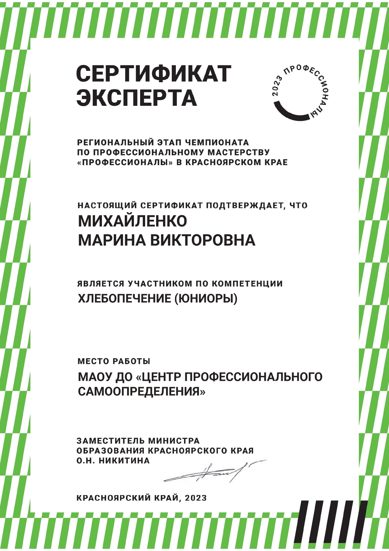 Михайленко Марина Викторовна Сертификат эксперта