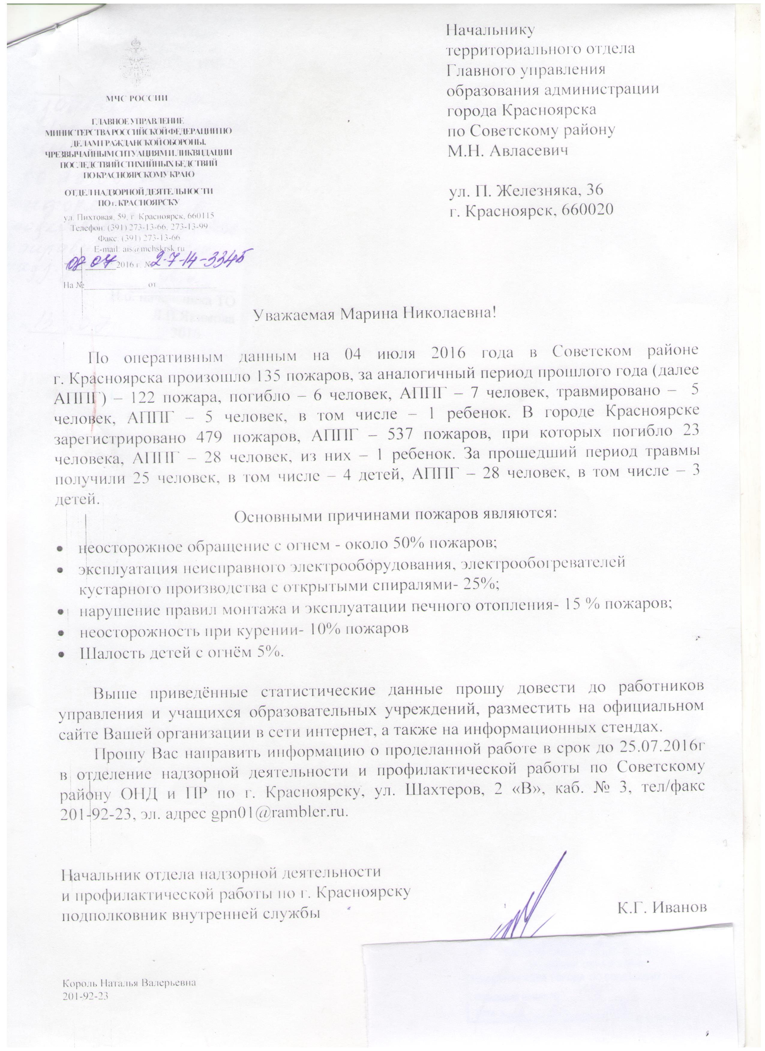 Статистика из Отдела надзорной деятельности по г. Красноярску